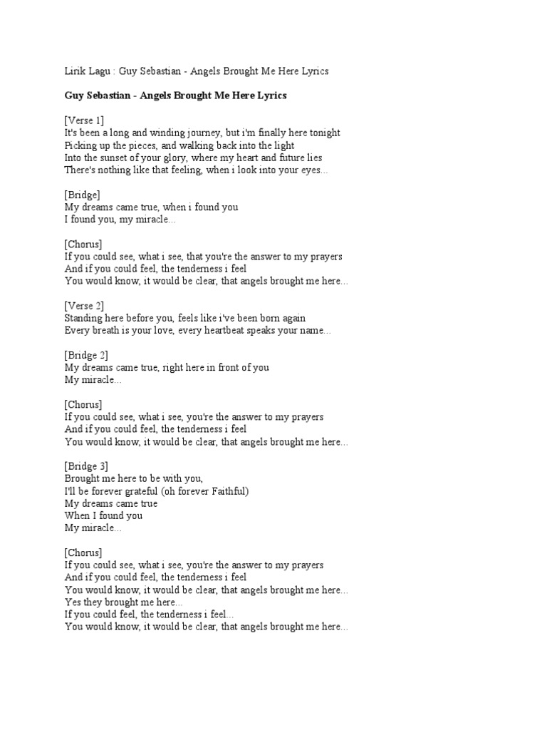 Angels Brought Me Here Guy Sebastian Lyrics Malaydkii